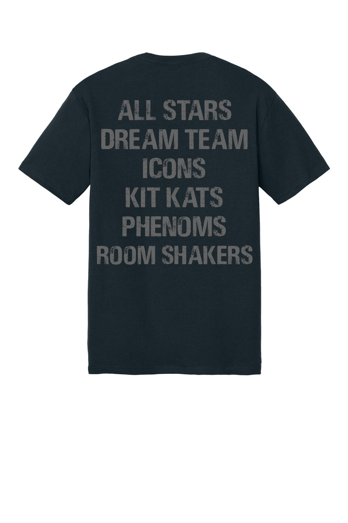 Black T-Shirt w/Full Color Front Logo and Individual Team Name on Back (just one team name; All Team names displayed for referrence)